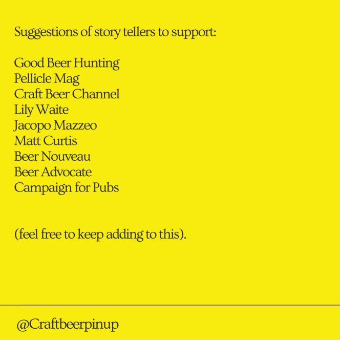 – Use the hashtag #drinkcrafttohelpout throughout August and show your support for the indie breweries – amplify their news/follow the feed.