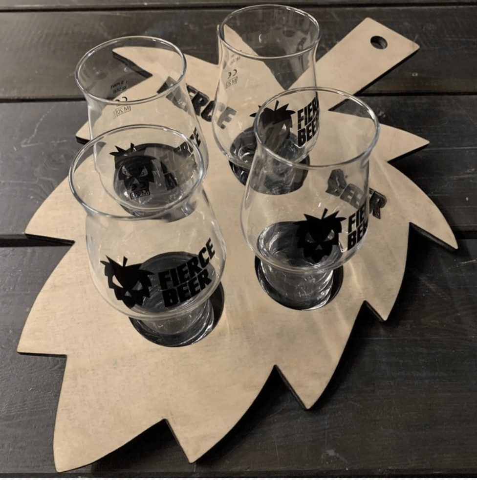 The set contains a wooden hop head flight board along with 4 x 1/3 craft master taster glasses all you’ll need to do is add the beer!