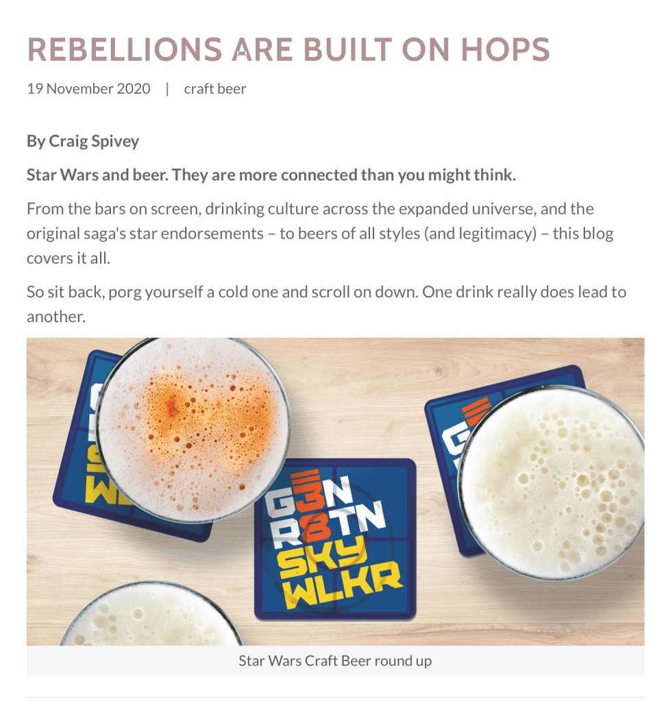 If you want to learn more about the history of all the ways Star Wars and Beer intertwine, check out this amazing blog from Generation Skywalker. It’s incredible!